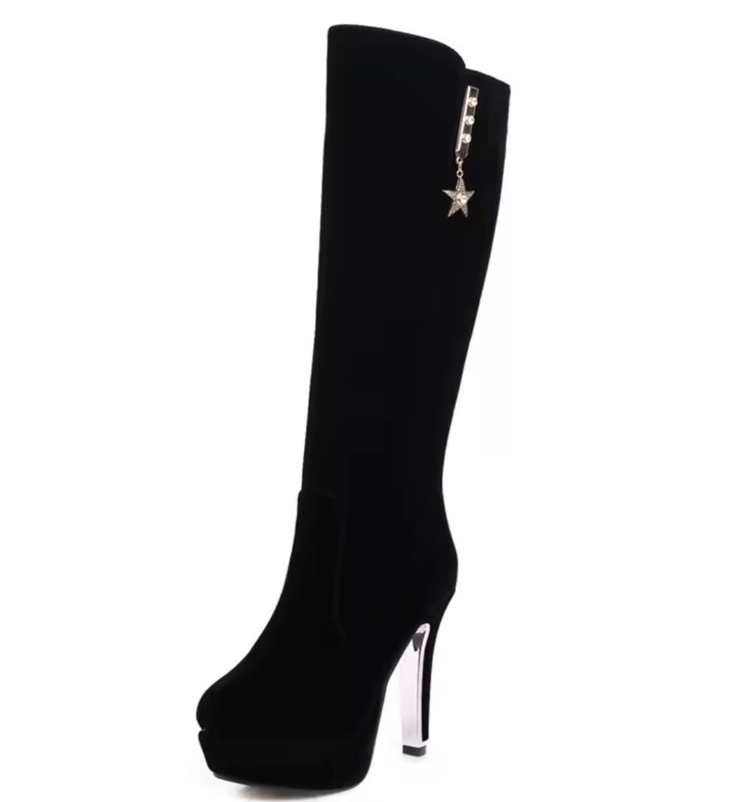 Step into luxury with our Star Charm Velvet Platform Boots, designed to captivate attention and elevate every outfit. Crafted for the modern Bella Rose muse, these boots blend bold glamour with timeless sophistication.
